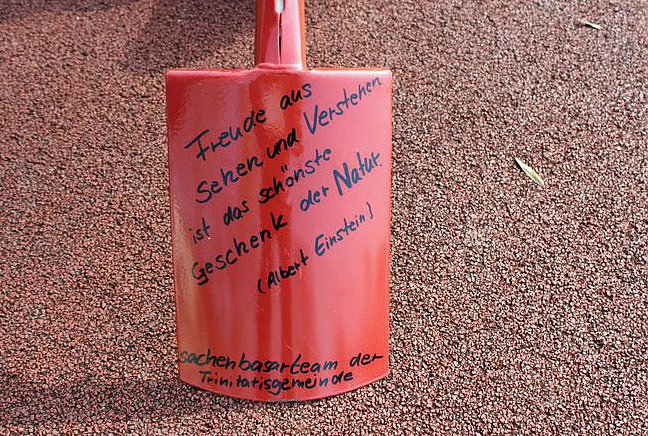 Und wenn dann noch finanzielle Hilfe im Anrücken ist, wird das natürlich freudig begrüßt. Bianca Fliß vom Teenie- und Kindersachenbasar der Trinitatisgemeinde haben aus dem Erlös des letzten Basars 200 Euro für diese guten und wichtigen Zweck zur Verfügung gestellt und Ellen Neumann und Maik Mies vom Förderverein nahmen die Spende entgegen. Kinder mit der Natur in Einklang zu bringen ist ein ganz wichtiger Aspekt in der Erziehung. Nu wer weiß, wie die Natur "funktioniert" kann sie auch schützen.