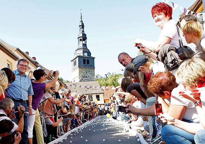Der Losverkauf für das Ballrennen startete heute um Punkt 13.00 Uhr in der Kyffhäuser-Therme Bad Frankenhausen und um 15.00 Uhr auch in der Tourist-Information Bad Frankenhausen. In Kürze werden noch weitere Verkaufsstellen im Kyffhäuserkreis (u.a. in Sondershausen, Artern, Kyffhäuserdenkmal) hinzukommen, so Leiter Stadtmarketing Thomas Knorr. Ein Los kostet nur 3,- € pro Ball und dient zur Rettung des Schiefen Turmes von Bad Frankenhausen.