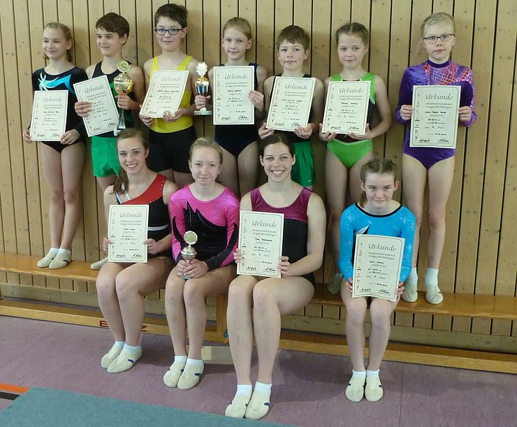 Am Besten konnte dies Karina Schlecht (1.) SV Glückauf SDH mit einer Gesamtpunktzahl von 56,75 vor Helen Danner (2.) TSV NDH mit 54,70 Punkten und Theresa Hörchner (3.) GA SDH. Clara-Sophie Werner (4.), Anna Nemitz (5.) und Alexa Pfers (6.), alle von Glückauf SDH. Karina konnte sich den Pokal sichern und für ein Jahr mit nach Hause nehmen.