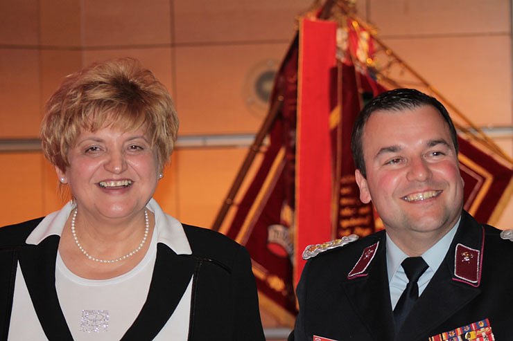 Landtagspräsidentin Birgit Diezel und Verbandsvorsitzender des Thüringer Feuerwehr-Verbands Lars Oschmann Foto: Thüringer Landtag