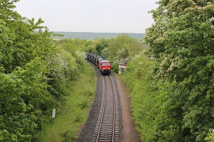 Autor: khhEs gab einige, die wollten an landschaftlichen schönen Stellen die Panzer während der Fahrt fotografieren. Überraschung Nummer eins: Auch wenn der Zug aus Bad Salzungen kam, in den Bahnhof von Sondershausen rollte er aus Richtung Nordhausen ein!