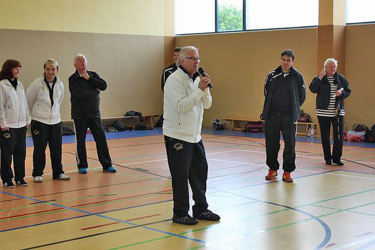 Kein geringerer als Fußballlegende Peter Ducke, bekannt sowohl im "Osten" und im "Westen" begrüßte die Mädchen und Jungen. Auch wer gerade nicht spielen musste fand in dem früheren Stürmerstar der DDR-Nationalmannschaft immer einen Gesprächspartner und Autogrammschreiber. Aber auch er verfolgte aufmerksam die Spiel.