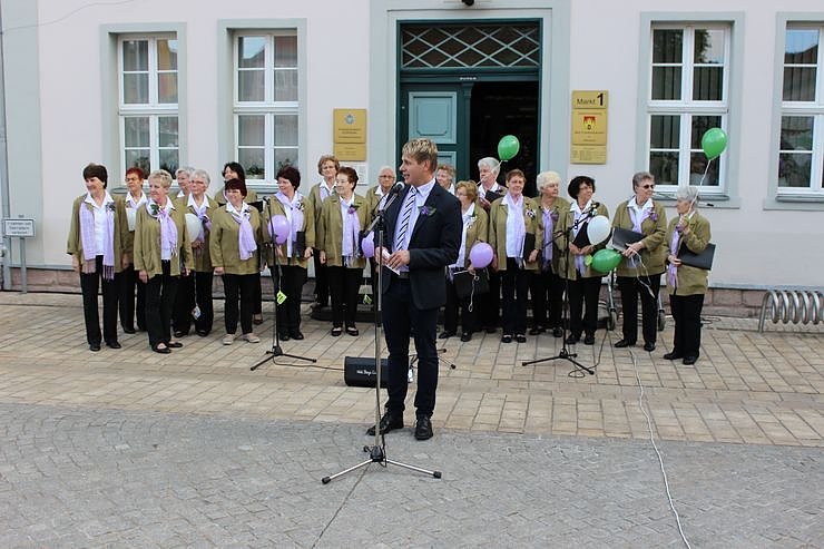 Zu Beginn des Fliederfestes in Bad Frankenhausen ist es Tradition am Markt die Fliederkrone zu setzen.Auch kn war am späten Nachmittag dabei, als