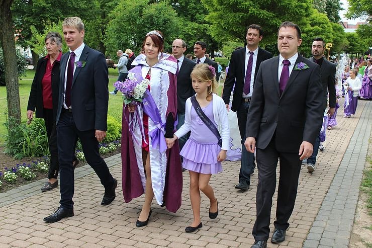 Angeführt wurde der Zug vom 1. Vorsitzenden des Gewerbevereins Bad Frankenhausen, Marco Schmidt zur rechten Seite und Frankenhausens Bürgermeister Matthias Strejc zur linken Seite, und die neue Fliederkönigin Lisa I. und Fliederprinzessin Rebecca I. wurden charmant in die Mitte genommen