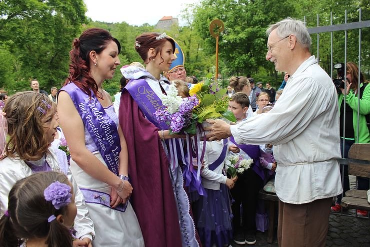 Es ist zur Tradition geworden, dass nach der Pflanzung eines Fliederbaums die neue Fliederkönigin dem schiefen Turm der Oberkirche Bad Frankenhausen ihre Referenz erweist, und viele regionale Majestäten mitbringt...