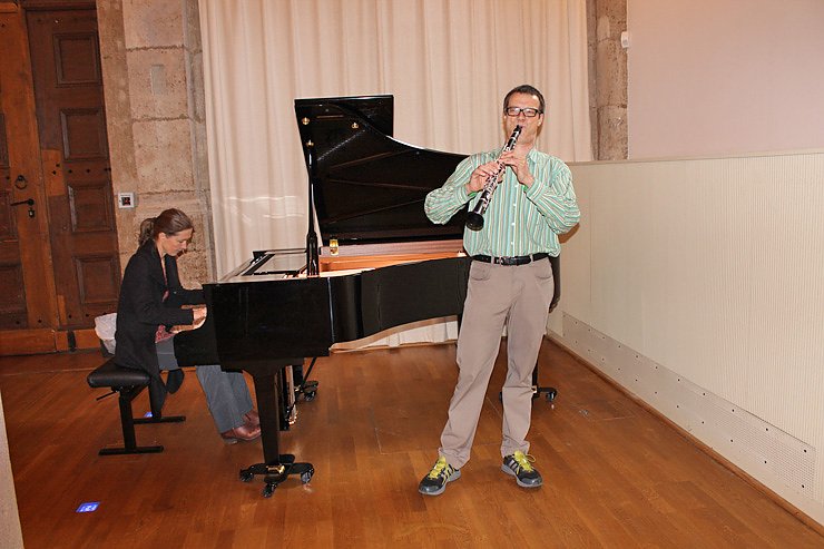 Die Pianistin Katharina Kegler spielte in Begleitung von Klarinettist Professor Martin Spangenberg erstmals auf dem neuen Instrument. Der in Hamburg gebaute Flügel hat in der Franz-Liszt-Halle des Marstalles sein neues Domizil gefunden.