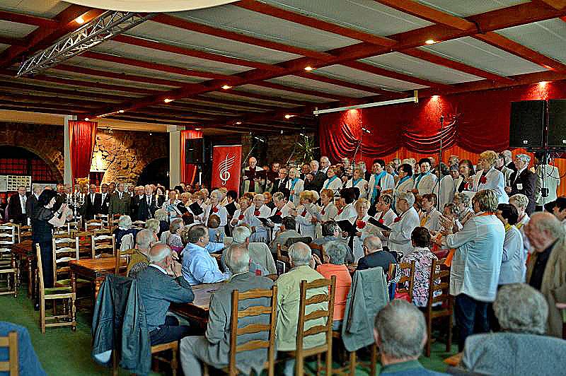 Und zahlreiche Chöre der Region waren am Sonntag, dem 18. Mai 2014 in der Geststätee Burghof auf dem Kyffhäuser an diesem Chortreffen dabei. Damit standen an diesem Nachmittag ca. 300 Sängerinnen und Sänger auf der Bühne und beweisen, dass Singen Freude macht
