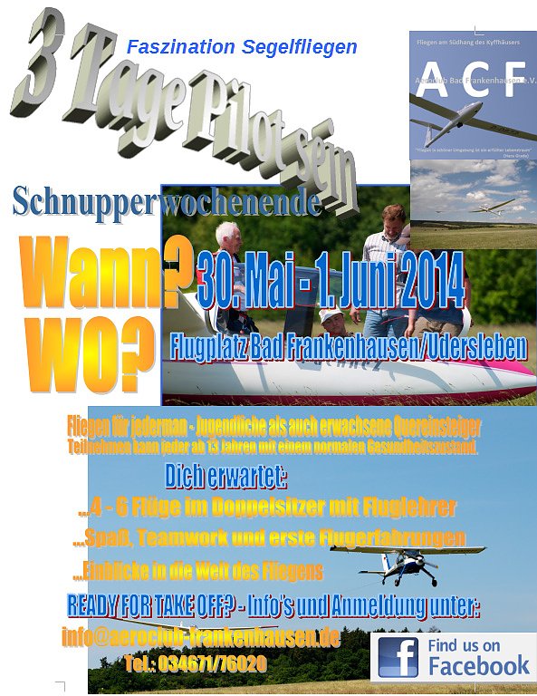 In den Kurznachrichten geht es um eine Sonntagsführung in Bad Frankenhausen, um ein Existenzgründerseminar und um einen Schnupperkurs Segelfliegen...