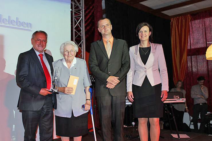 Fritz Apel konnte heute selbst nicht da sein. Seinen Preis nahm stellvertretend Brigitte Neumann vom Verband der Gehörgeschädigten in der Kategorie Selbsthilfegruppen und Gesundheit entgegen. Sie hatte gemeinsam mit Rene Hartnauer die Laudatio gehalten. Selbst durch eine Operation und nachfolgender Medikamentierung das Gehör verloren, gründete er den Verband den er bis 2012 auch leitete. Sein Ziel Barrieren für Gehörlose abbauen.