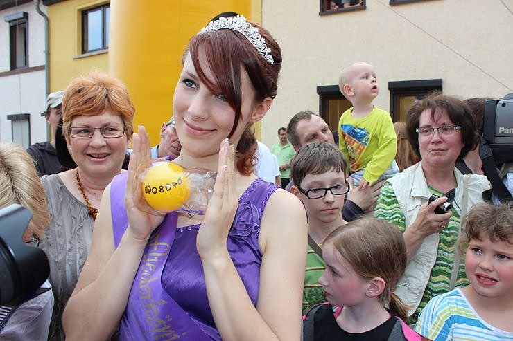 Der neu gekrönten Fliederkönigin blieb es vorbehalten, den Siegerball zur Tribüne zu tragen.