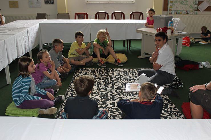 DRK-Jugendleiterin Sandra Österheld konnte zufrieden sein, auch wenn man den Regen wegen der Halle nicht zu fürchten brachte, ist es doch schöner sich in den Pausen die Füße vertreten zu können und eine Station fand ja auch im Freien statt. Los ging es mit der Einteilung der Gruppen, denn fünf Ausbildungsstationen waren aufgebaut.