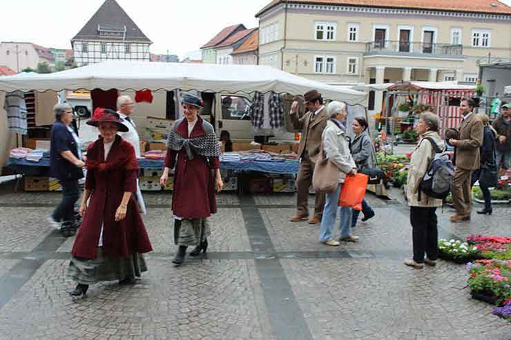 Auf dem Markt von Sondershausen erregten heute vier Besucher" Aufmerksamkeit die etwas seltsam für die Zeit gekleidet waren.