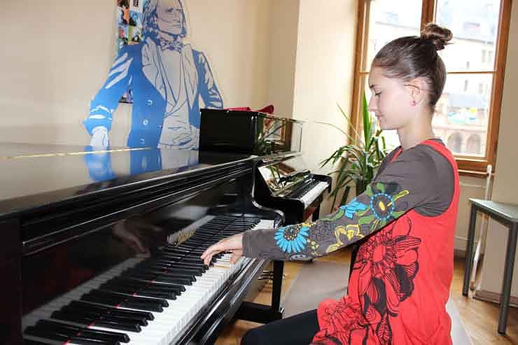 Die Wertungen im Fachbereich Klavier begannen um 09:00 Uhr und werden bis ca. 19:30 Uhr andauern. Da kn nicht mit der Kamera beim eigentlichen Vorspielen stört, fand sich im Vorbeireitungsraum die Gelegenheit zu einem Foto. Nele Seifert von der Musikschule Jena spielte sich schon mal warm und musste anschließend in die Wertung.