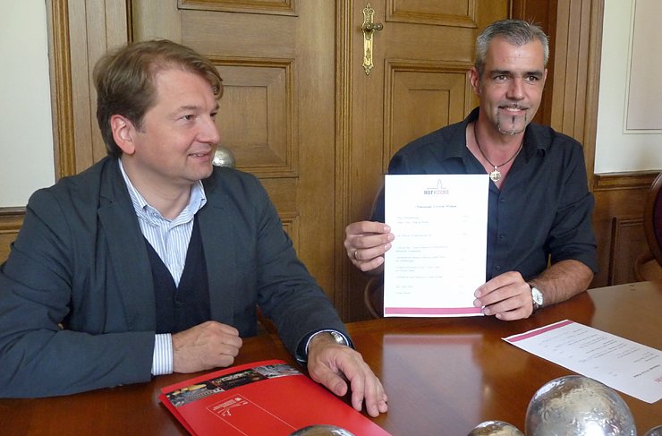 Am heutigen Mittag stellten Lars Tietje, Intendant der Theater Nordhausen/Loh-Orchester Sondershausen GmbH und Ralf Dittman von der Hofküche Sondershausen das Konzept für die diesjährigen Schlossfestspiele vor.
