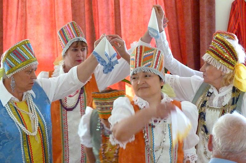 Geboten wurden durch die Gruppe KONTAKT Tanz und Musik in russischer Sprache. Vorgetragen in schönen selbst geschneiderten bunten Tracht- und Folklorekleidern. Danach wurde karnevalistisch das Tanzbein bei den kleinen Tänzerinnen von Gelb-Weiß geschwungen. Russische Tänze, ein jauchzender Tanz des fahrenden Volkes, Funkenmariechen, Indianer und Frösche – der Beifall des begeisterten Publikums zollte den großen und kleinen Künstlern großen Respekt. Die Freude und gute Laune waren ansteckend.