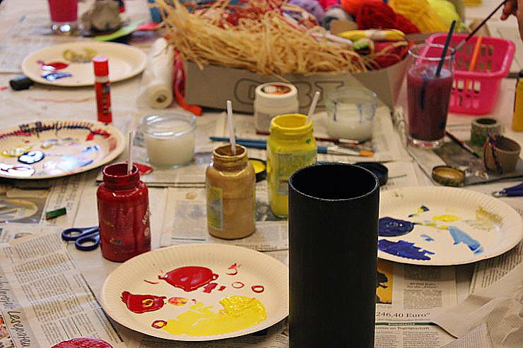 Und wenn man vom probieren der Musikinstrumente genug hatte, konnte man sich beim Zeichnen und Malen künstlerisch betätigen. Und wer Hunger oder Durst verspürte konnte bei Würstchen und verschiedenen Getränken sich versorgen.