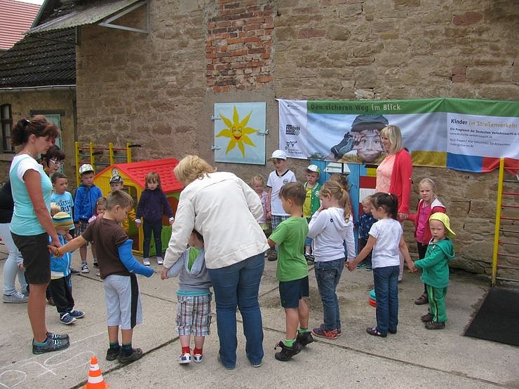 Die Kyffhäuser-Verkehrswacht Artern e.V führte am Montag, den 14.07.2014 eine Verkehrssicherheitsveranstaltung mit 25 Kindern zwischen 3 und 6 Jahren in der Kita Riethspatzen in Heygendorf durch.