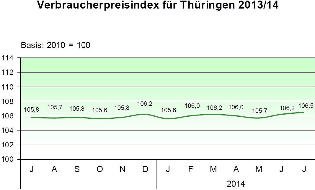 Binnen Monatsfrist stieg der Verbraucherpreisindex nach Mitteilung des Thüringer Landesamtes für Statistik um durchschnittlich 0,3 Prozent und erreichte einen Indexstand von 106,5 Prozent (Basis 2010=100). Wir haben uns den Warenkorb wieder genauer angesehen...