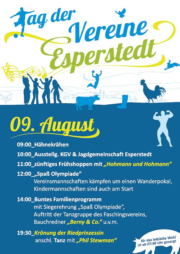 Nicht von wegen lange pennen. Am 09:00 Uhr geht es in Esperstedt rund. Da beginnt am 09. August 2014 der Tag der Vereine mit dem Hähnekrähen.