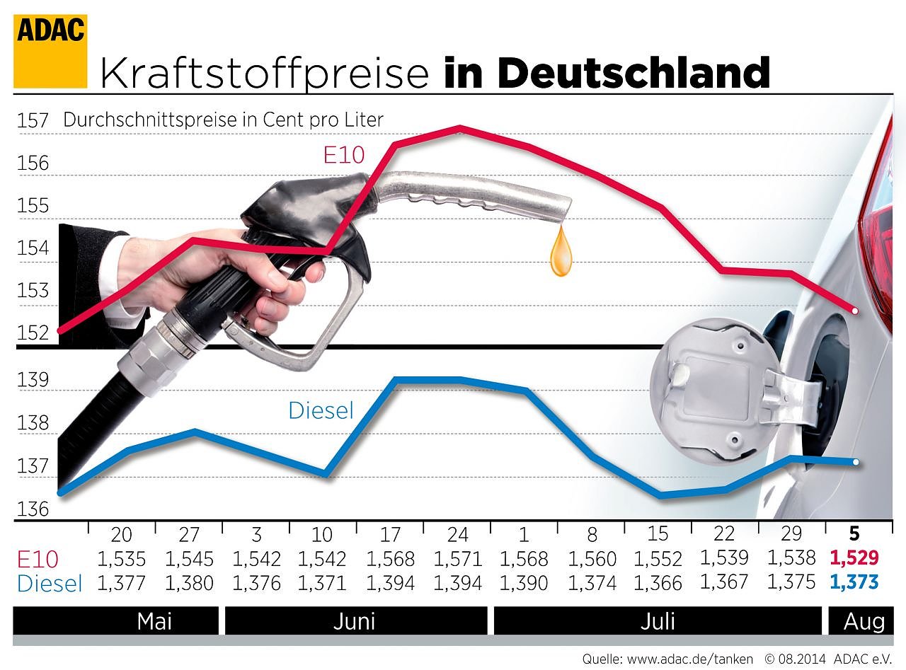 Laufend aktuelle Informationen über die Preisentwicklungen an den rund 14 000 Tankstellen in Deutschland gibt es in der App ADAC Spritpreise, weitere Informationen zum Kraftstoffmarkt sowie über die Spritpreise im Ausland unter www.adac.de/tanken.