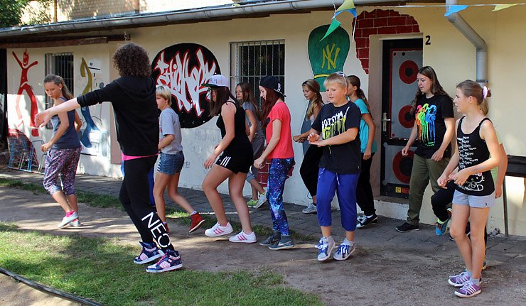 Seit Montag wird mit allen Jungen und Mädchen, die in der Woche vom 11. bis 15. 08. 2014 am JuST Dance Workshop im Sondershäuser JuST teilnehmen, verschiedene Tänze einstudieren und eine Gesamtchoreoprahie aus Teilen des Hip Hop, Breakdance und Moderndance erstellen.