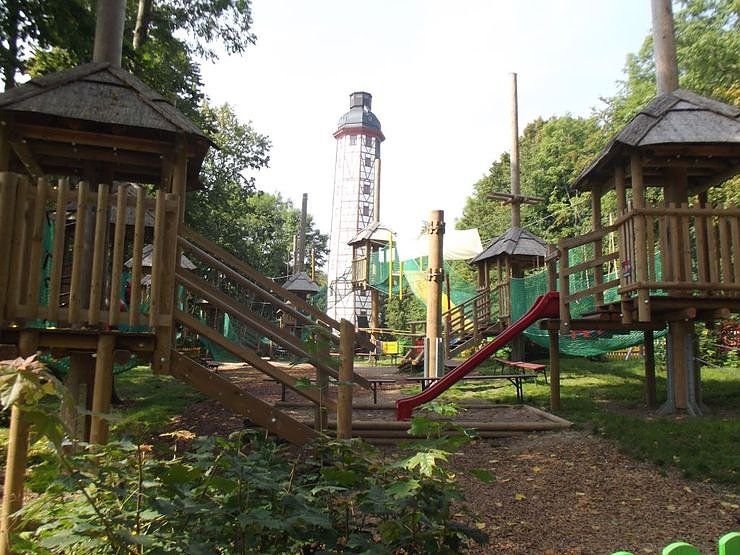Nach 13 Uhr füllte sich auch der Parkplatz zusehends und viele weitere Ausflugsgäste trafen ein. In den letzten Jahren hat sich hier sehr viel getan und verändert und Neues ist hinzugekommen. Eine der neueren Attraktionen ist der Kletterwald, aber auch anderes ist sehenswert. Hier wird viel Wert auf Erlebnis mit der ganzen Familie gelegt. Spielplatz, Hüpfburg, Kinderkletterparadies und vieles mehr bieten für die Kinder Spiel und Spaß an.