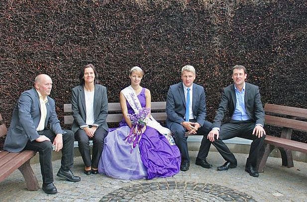 Dann wurde es aber ernst und der neugestaltete Saunagarten wurde übergeben. Für kn präsentiert hier Fliederkönigin Lisa I. das neue "feudale" Kleinod. Der idyllische Saunagarten wurde um ganze 25 Meter entlang der historischen Stadtmauer erweitert und neben den beiden Außensaunen durch neue Angebote bereichert. So entstanden hier ein großes Abkühlbecken (6x4m) mit Felsendusche, ein Ruhe- und Massagehaus, zusätzliche Sonnenliegeflächen, sowie eine Sole-Gradierwand. Zudem wurde der Fußreflexzonen-Massagepfad an einer anderen Stelle im Saunagarten neu angelegt.