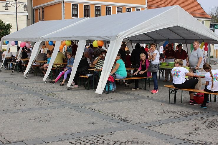Die gemeinsame Eröffnung um 15.00 Uhr auf dem Marktplatz nahme Bürgermeister Joachim Kreyer vor. Er freute sich, dass 11 Kitas, die Skatearena, die Düne die FAU, der Kreisjugendring und der Stadtjugendring mit Angeboten teilgenommen haben. Während das Kinder- und Familienfest unter dem Thema Gesunde Ernährung und Bewegung startet, wird sich das Musikstadtprojekt mit einigen Aktionen rund um das Fest bewegen.