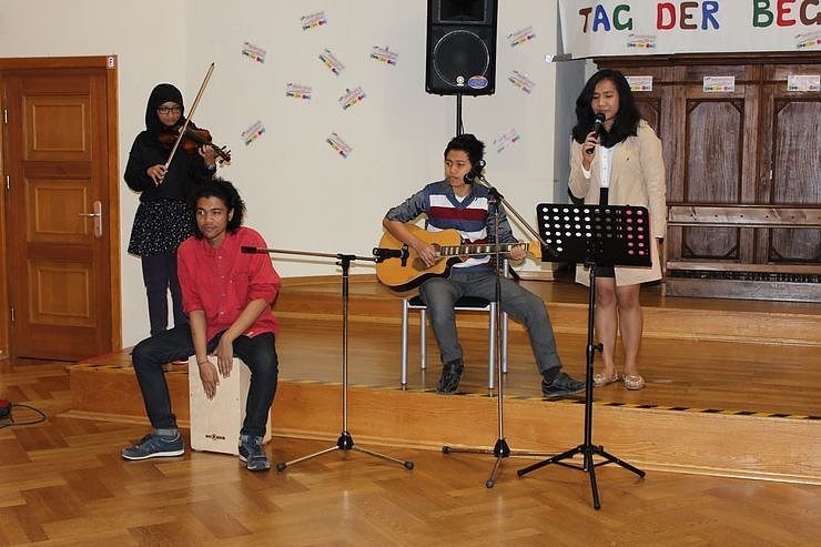 Als indonesiche Studentinnen und Studenten angekündigt wurden, die übrigens an der Fachhochschule Nordhausen studieren, dachte man, hier wird es fernöstliche Musik geben. Aber weit gefehlt. Man überraschte mit Pop-Musik und Klängen von Pink Floyd und Justin Bieber und erntete sehr viel Beifall. Noch mehr Beifall mit Bravo-Rufen gab es für dieses indonesische Liebeslied, das von der Sehnsucht nach einem Mann spielt, der im Ausland arbeiten muss.