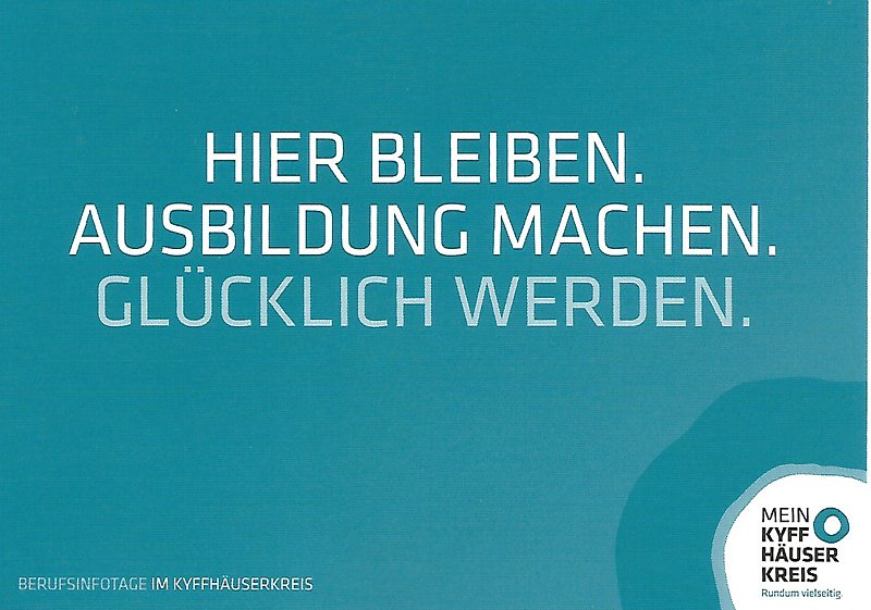 Der Kyffhäuserkreis wirbt gemeinsam mit den Kammern der Wirtschaft, der Agentur für Arbeit und dem Staatlichen Schulamt Nordthüringen darum, dass möglichst viele Schulabgänger im Kyffhäuserkreis eine Ausbildung in einem hiesigen Unternehmen beginnen.