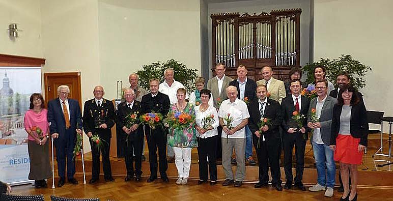 Es wurden 11 Einzelpersonen und vier Vereine und Organisationen für die Auszeichnung mit dem Ehrenamtspreis vorgeschlagen. Eine Jury aus Vertretern der Stadtverwaltung und des Stadtrates (Ältestenrat) hatten die angenehme, als eben auch unangenehme Aufgabe, drei Preisträger auszuwählen. Eigentlich hätten alle ehrenamtlich Arbeitenden einen Preis für ihr ehrenamtliches Engagement verdient. Zum Schluss der Veranstaltung versammelten sich alle Preisträger und Vorgeschlagene, so sie heute zur Gala kommen konnten.