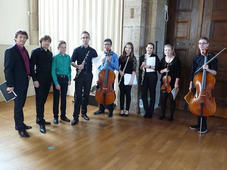 Das Landesjugendensemble für Neue Musik Thüringen mit ihrem Dirigenten Juri Lebedew.