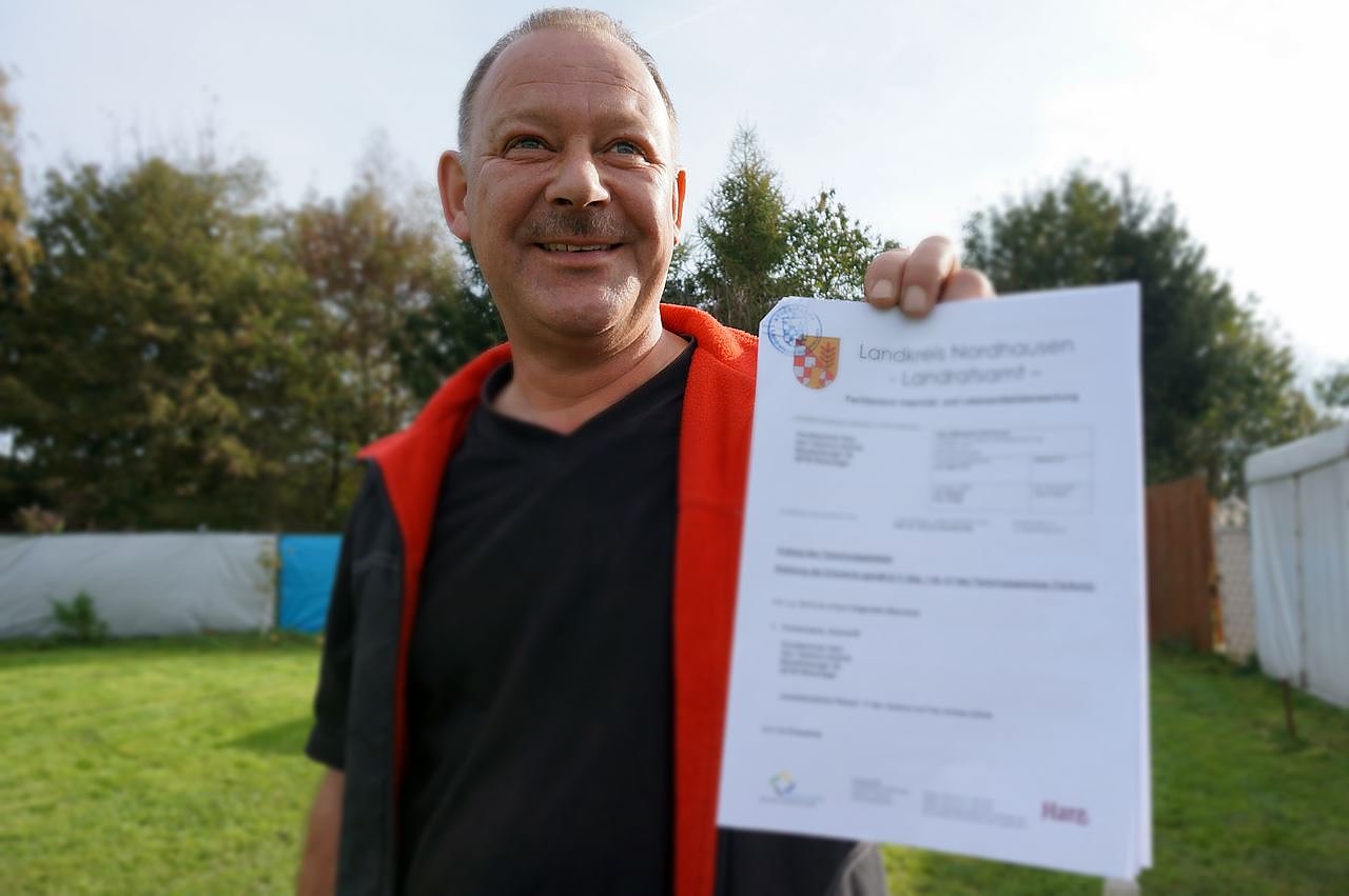 Die Erlaubnispflicht im Rahmen der gesetzlichen Neuregelung des Tierschutzgesetzes für die Ausbildung von Hunden, halten Andrea und Hartmut Gollnik für einen guten Weg. Hundetrainer ist kein geschützter Beruf, jeder konnte sich so nennen, ob er nun Erfahrung mit der Ausbildung von Hunden hatte oder nicht. Ab dem 01. August benötigen alle Hundetrainer- und Hundeausbilder sowie Hundepsychologen in Deutschland eine Genehmigung des Veterinäramtes und müssen ebenfalls ihre Sachkunde, z.B. durch einen anerkannten Qualifikationslehrgang, nachweisen. So wurde in Ilfeld der Platz begutachtet und Ausbildungsnachweise überprüft.