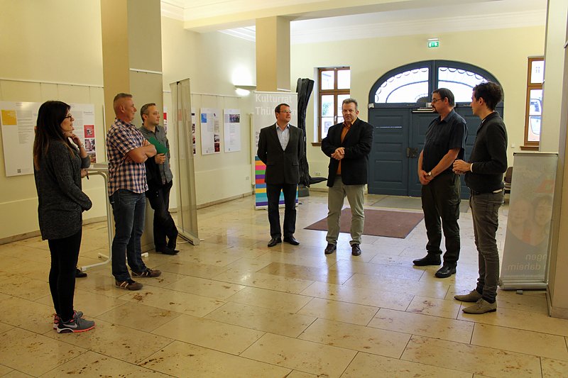 Die Ausstellungseröffnung nahmen Holger Häßler, erster Beigeordneter der Landrätin des Kyffhäuserkreises und Jörg Dietrich, Geschäftsführer des Kulturrats Thüringens vor. Mitarbeiterinnen und Mitarbeiter, welche die Themenschwerpunkte Kultur und Tourismus bearbeiten, informierten sich aus erster Hand.