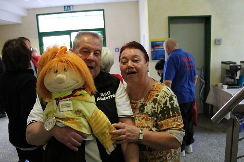 Die Sportfreunde aus Anderten (Niedersachsen) haben sich mit Sarah schon eingrößeres Maskottchen mitgebracht.