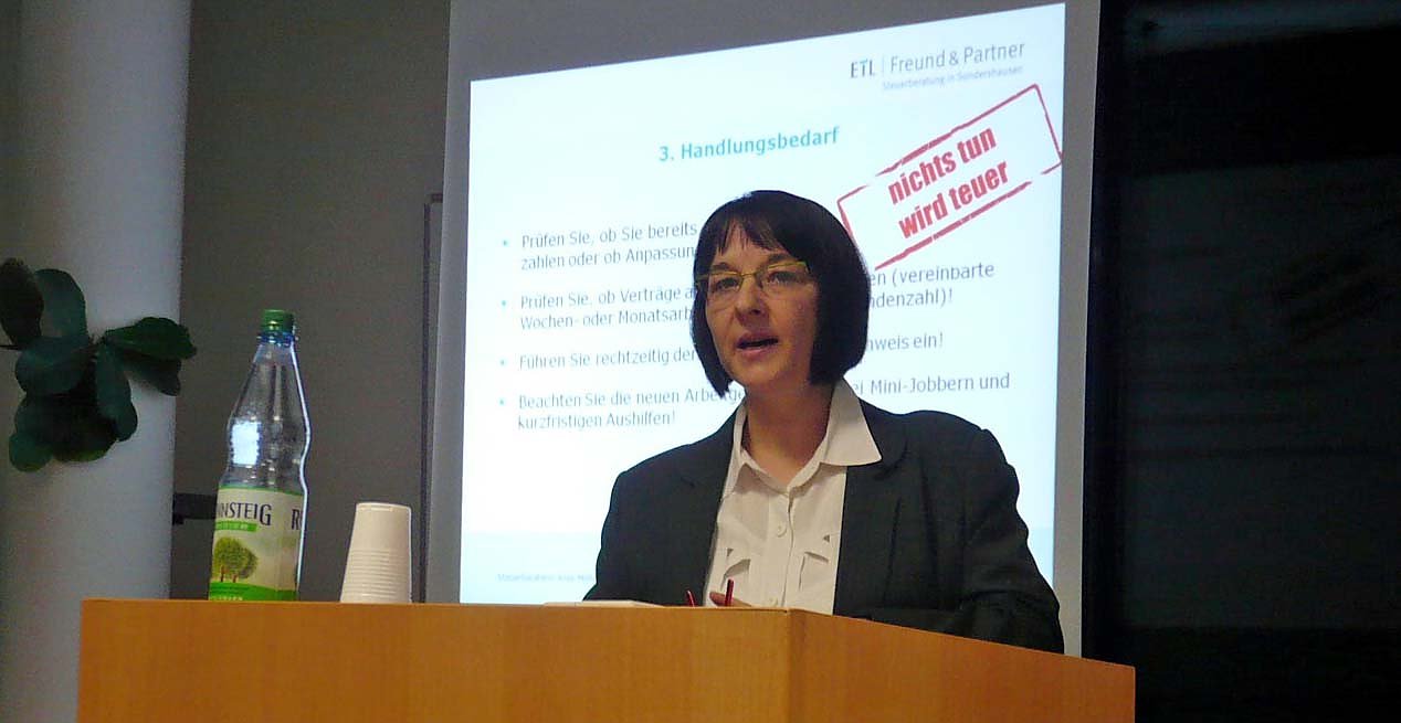 Die ETL Steuerberatungsgesellschaft Freund & Partner und der Sondershäuser Gewerbe- und Wirtschaftsverein (SGW e.V.) hatten am 6.11.2014 interessierte Unternehmer/innen zu einer Informationsveranstaltung mit diesem Thema eingeladen.
