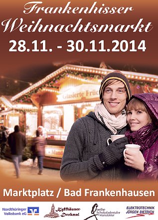 Durch umfangreiche Vorbereitungsmaßnahmen für den diesjährigen Frankenhisser Weihnachtsmarkt, wird der Wochenmarkt am 27. November 2014, nicht wie üblich auf dem Marktplatz, sondern auf dem Anger stattfinden.