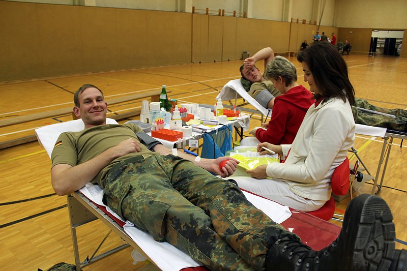 Autor: khhMit 94 freiwilligen Spendern haben sich viele Teilnehmer an der Aktion für einen gute Zweck beteiligt. Es waren sowohl Zivilisten aus der Bevölkerung in die Kaserne geströmt, als auch Kameradinnen und Kameraden der Bundeswehr des Standortes haben sich Blut abzapfen lassen.