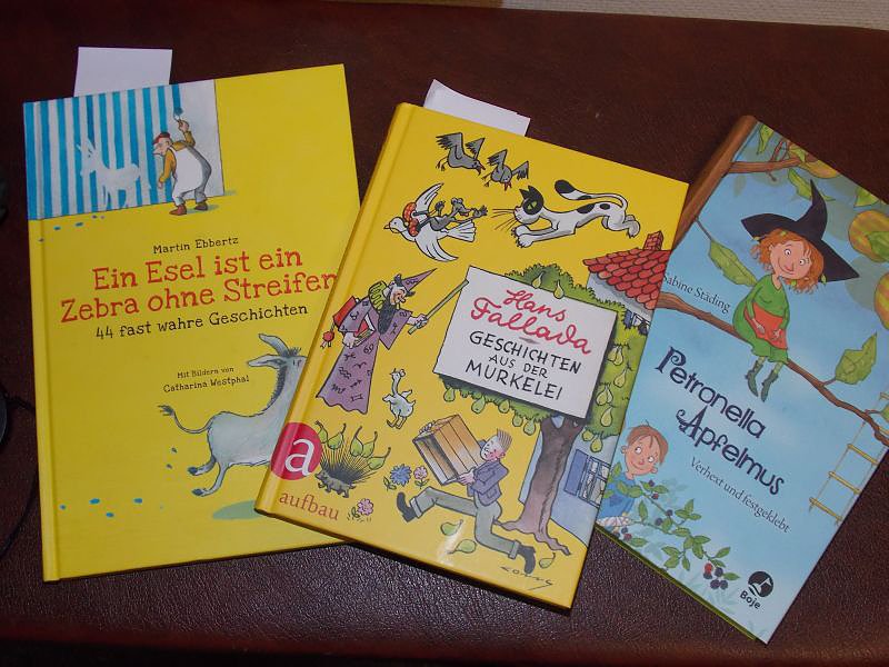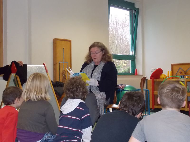 Dorothea Marx las einige Geschichten aus den Kinderbüchern Ein Esel ist ein Zebra ohne Streifen von Martin Ebbertz, Geschichten aus der Murkelei von Hans Fallada und Petronella Apfelmus von Sabine Städing vor. Damit die anderen Geschichten auch noch vorgelesen werden können, schenke sie die Bücher zum Abschluss dem Förderzentrum.