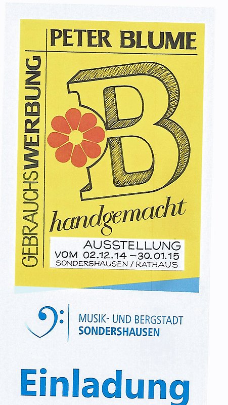 Am morgigen Dienstag (2. Dezember) wird im Foyer des Rathauses Sondershausen eine Ausstellung des Gebrauchsgrafikers Peter Blume. Beginn ist um 16:30 Uhr.