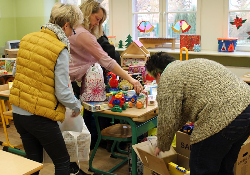 Die Elternvertreter der Schule, sowie Schulleiterin Ellen Neumann verfasste wieder einen Brief, ob sich Kinder und Eltern der gesamten Schule an einer Weihnachtsaktion beteiligen wollen. Es ging darum, dass sich Kinder von ihrem Spielzeug zu Gunsten bedürftiger Kinder trennen.