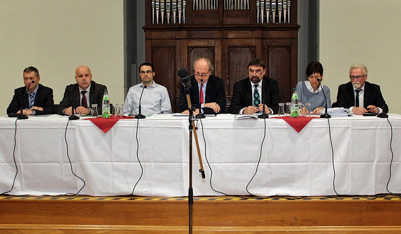 Über 100 Interessierte waren in der Carl-Schroder-Saal von Sondershausen gekommen, um sich über die Giftmüllproblematik zu informieren, wie diese oft etwas kurz bezeichnet wird. Im Blickpunkt dabei die Hauptakteure GSES- Geschäftsführer Johann-Christian Schmiereck, Bürgermeister Joachim Kreyer (CDU) und Grubenbetriebsleiter Kießling, sowie je zwei Vertreter des Bergamts Gera und des Landesverwaltungsamtes Weimar.
