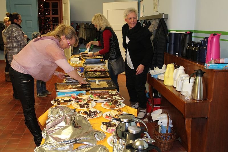 Viele Eltern, besonders natürlich die Muttis, hatten mit dem Backen von vielen Kuchen dafür gesorgt, dass man sich vor dem Weihnachtsspiel und natürlich auch danach mit Kaffee und Kuchen stärken konnte. Auch hier ging der Erlös, wie schon bei den Basarprodukten der CSC GmbH zu Gunsten von Schulprojekten.