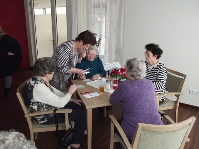 Alle hatten einen Bingo Schein und Stift erhalten und so konnte die Ziehung beginnen. Als einziger Mann in der Runde und quasi als Hahn im Korbe hatte ich dieses Mal aber nicht so viel Glück. Vielleicht stimmt ja doch das Sprichwort von wegen Glück in der Liebe und Pech im Spiel? Zu oft wurden meines Erachtens nach die falschen Zahlen gezogen und ich konnte nur spärlich die Zahlen auf meinem Schein abstreichen lassen. Es dauerte auch dieses Mal recht lange, ehe endlich eine Seniorin Bingo rufen konnte und alle Zahlen auf ihrem Schein abgestrichen hatte.
