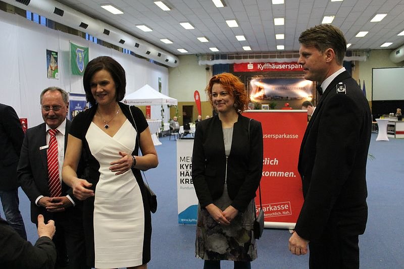 Landrätin Antje Hochwind (SPD), der Standortälteste Oberstleutnant Markus Kankeleit als "Hausherr" und der Vorstandsvorsitzende der Kyffhäusersparkasse, Ulrich Heilmann, begrüßten die Gäste. Wie kn erfahren hat, sind wieder rund 1.300 Einladungen versendet worden und gerechnet wird mit rund 800 Gästen.