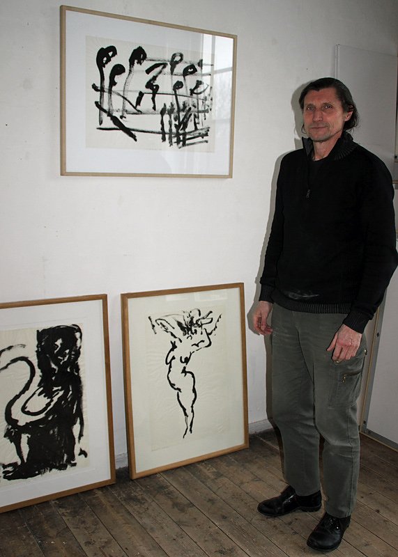 In Walter Sachs` Atelier in der Weimarer Karl-Haußknecht-Straße geht es eng zu. Ein über 30-jähriges Künstlerleben hat seine Spuren hinterlassen. Auf der einen Seite des Raumes warten kleinere Skulpturen wie Der Rufer oder die nackte Frau im Yoga-Sitz auf ihre Vollendung. Gegenüber sind Dutzende große Bilderrahmen aufgereiht. Sachs nimmt einige davon in die Hand und prüft, ob sie in die nächste Ausstellung passen könnten. Am 8. März ist der Künstler Gast des KulturCafés der Landesmusikakademie Sondershausen und wird eine kleine Bilderschau eröffnen.
