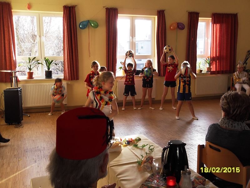 Die Kindertanzgruppe vom Stocksener Karnevalsverein "Gelb-Weiß" brachten Leben, Rhythmus und Bewegung in den Saal. Angeführt vom Kinderprinzenpaar waren, Sambatänzerinnen Fußballerinnen und die Gardetänzerinnen brachte Stimmung in den Raum.