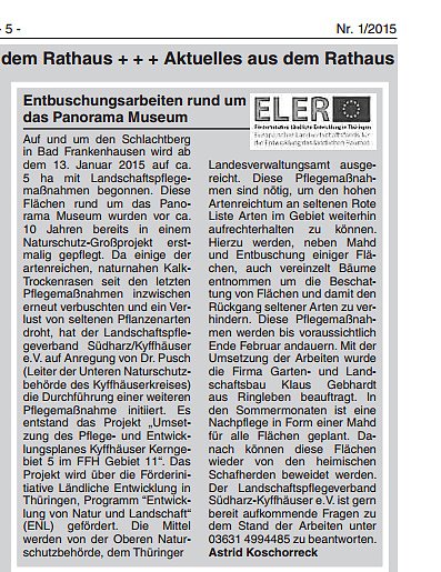 Das Projekt wird übrigens über die Förderinitiative Ländliche Entwicklung in Thüringen, Programm Entwicklung von Natur und Landschaft (ENL) gefördert.