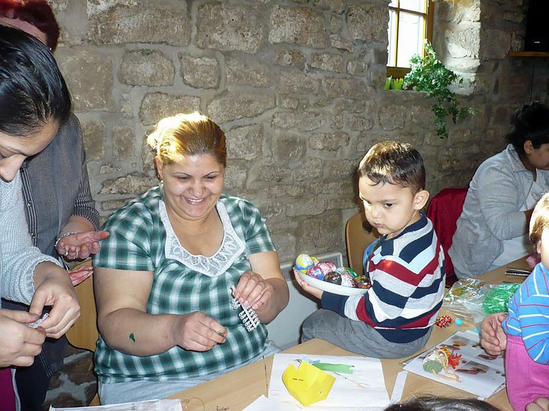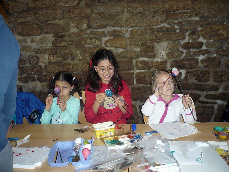 Zu einem gemeinsamen "Osterbastel- und Kennenlernnachmittag" fanden sich hier ca. 50 Migranten und Einwohner des Ortes mit ihren Kindern zusammen.