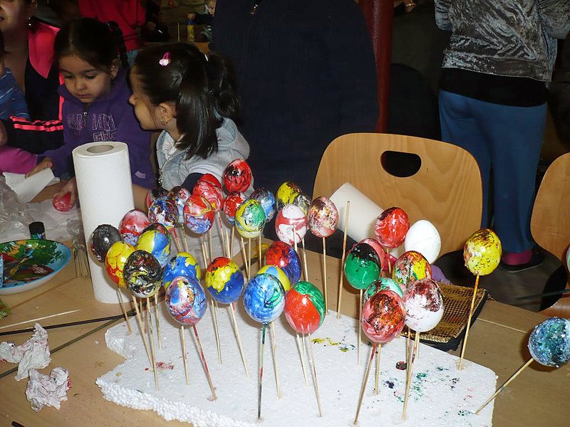 Alle wollten Marmorieren, Körbchen für die zuvor gefärbten Eier basteln oder Bilder und Eier bemalen.